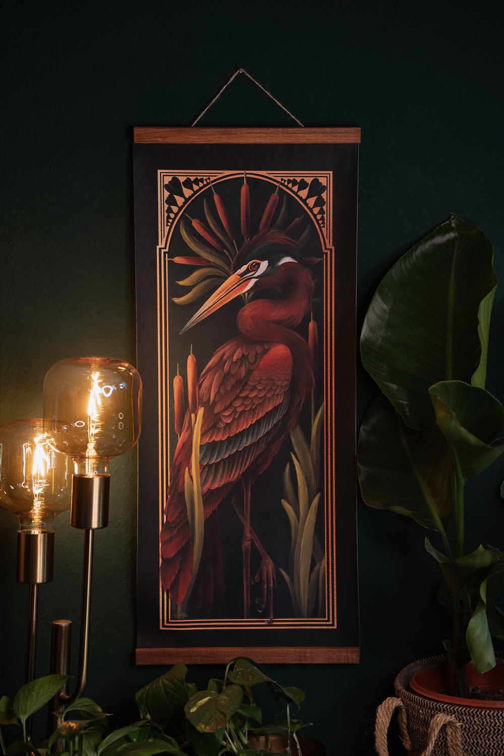 · solid beech wood poster hanger with magnets and hemp cord for attachment