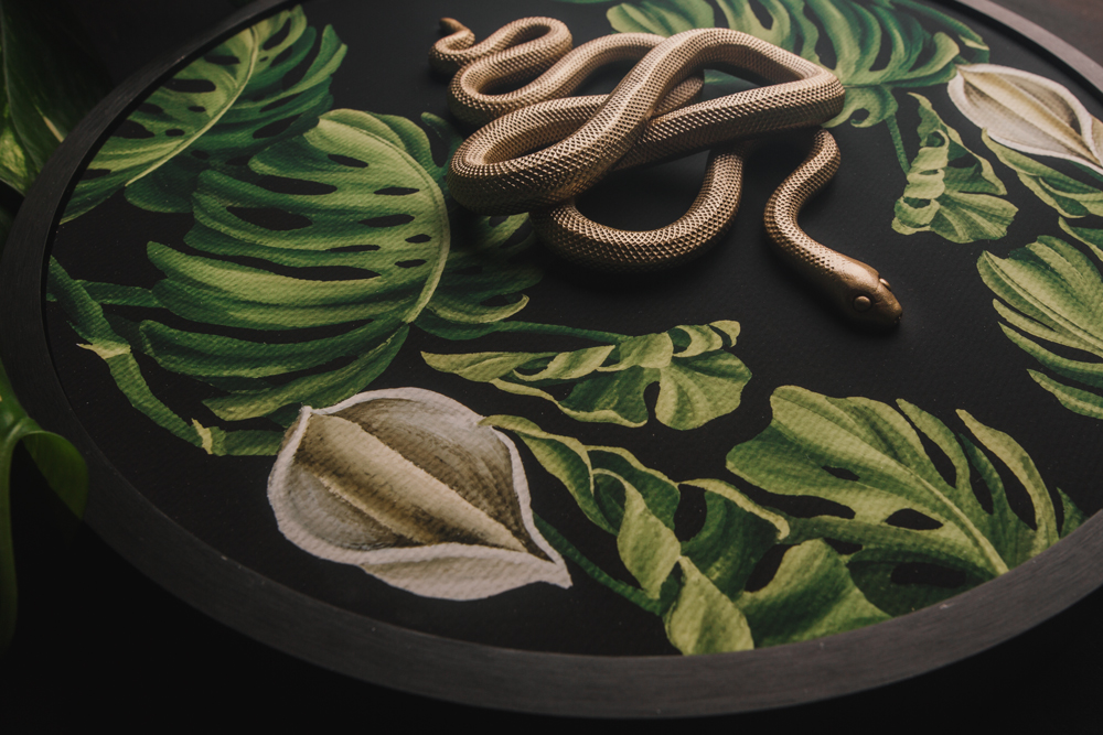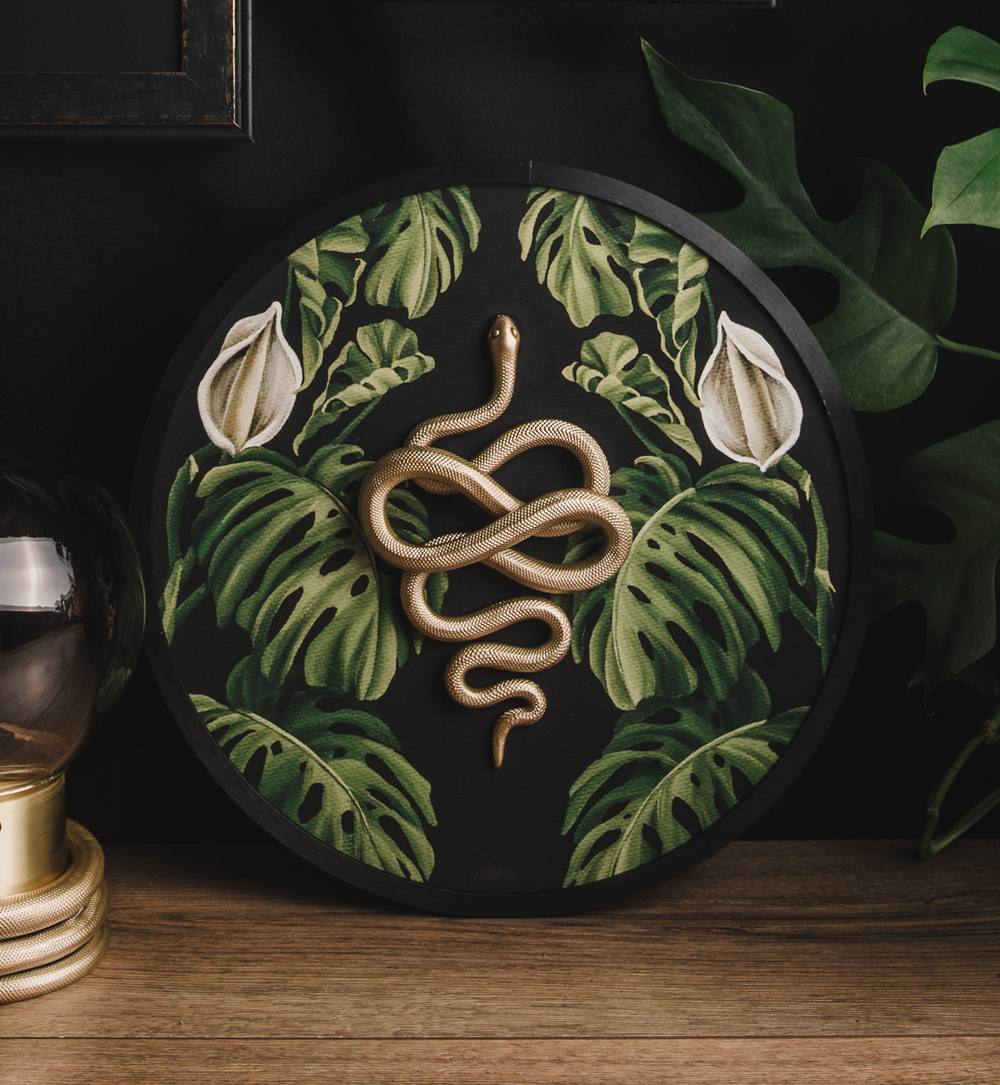– one handsculpted snake glued on a 30 x 30 fine art print with black frame