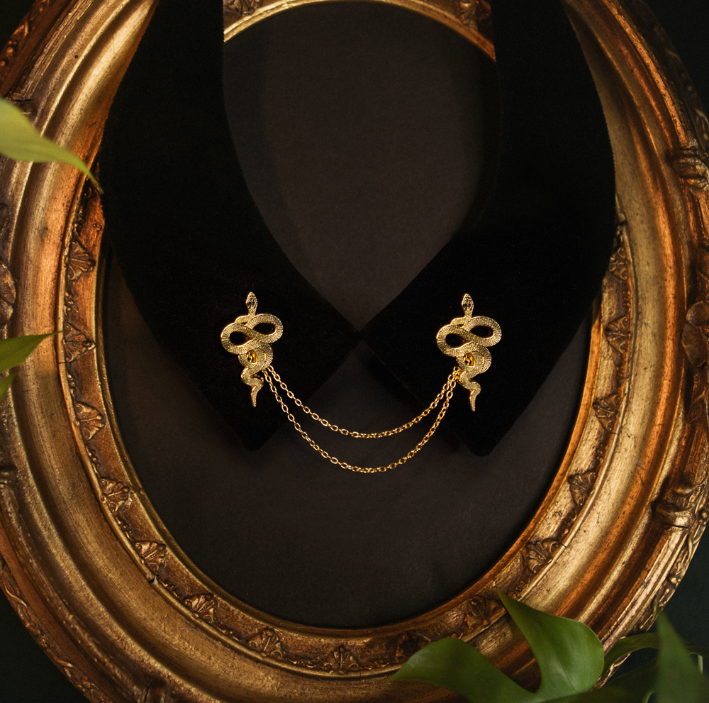 the black fabric collar on the detail picture is just to show you an example how to use these pins/brooches. They’re not included in the purchase!