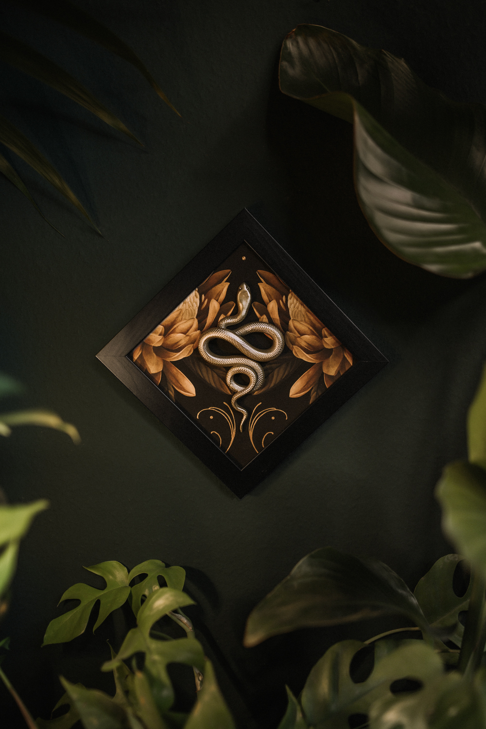 glued on fine art print with black wooden frame. comes with suspension on the backside